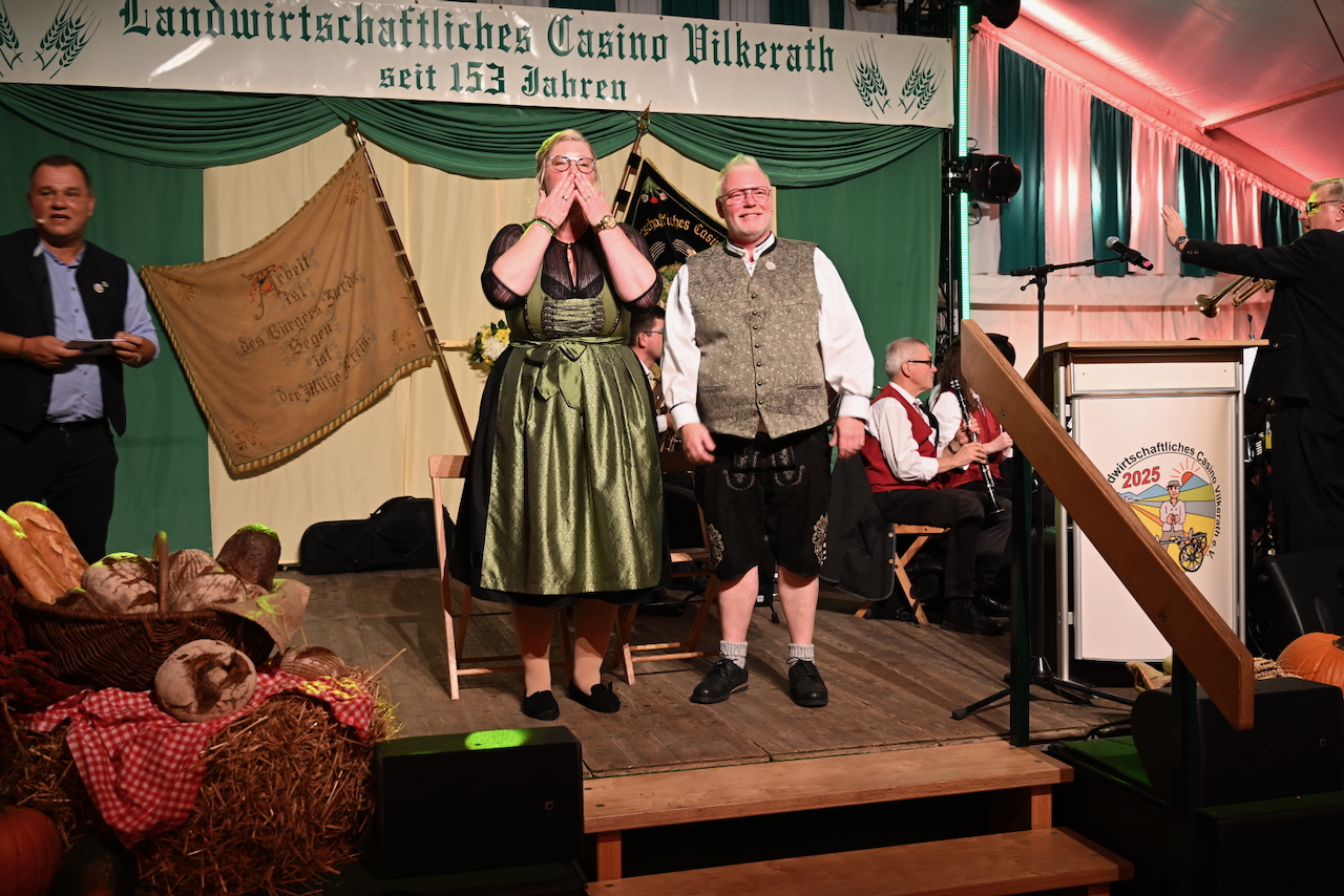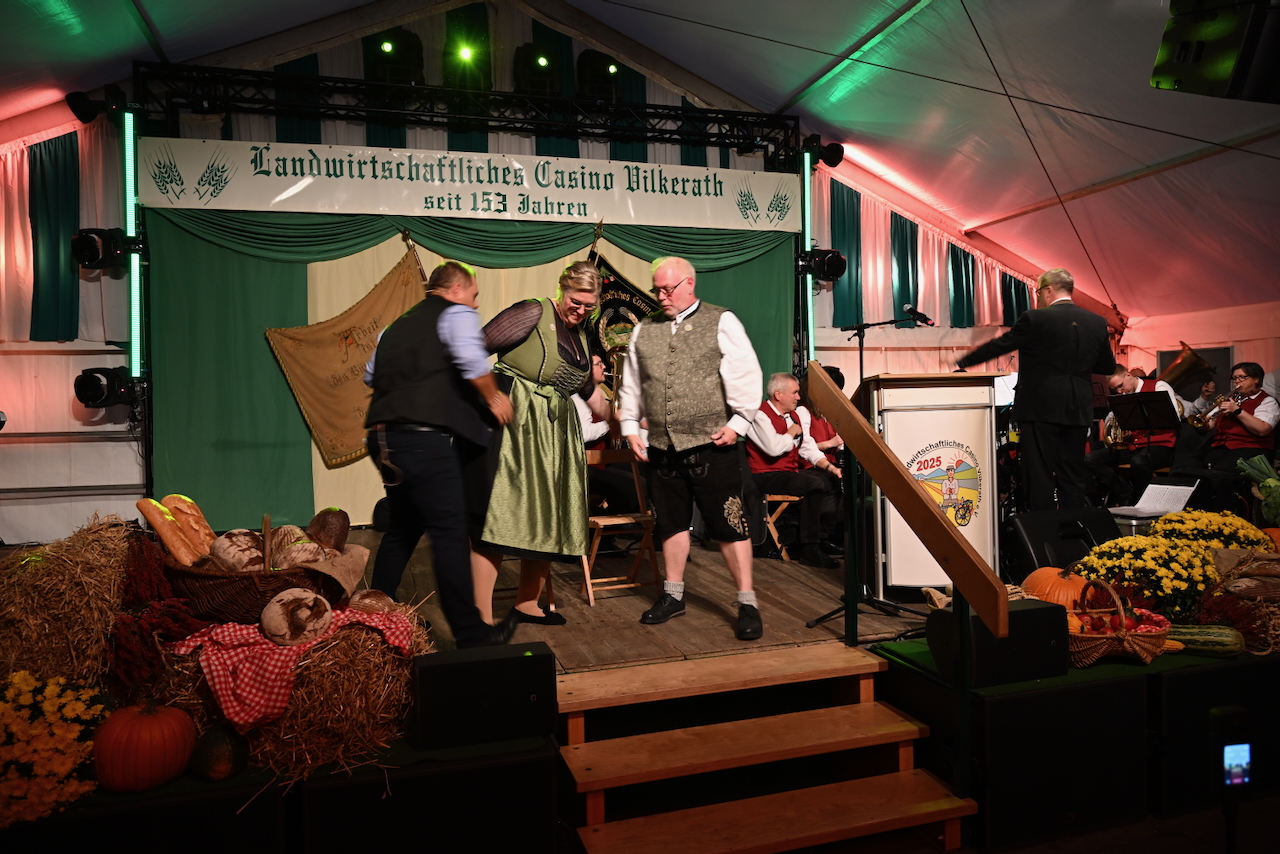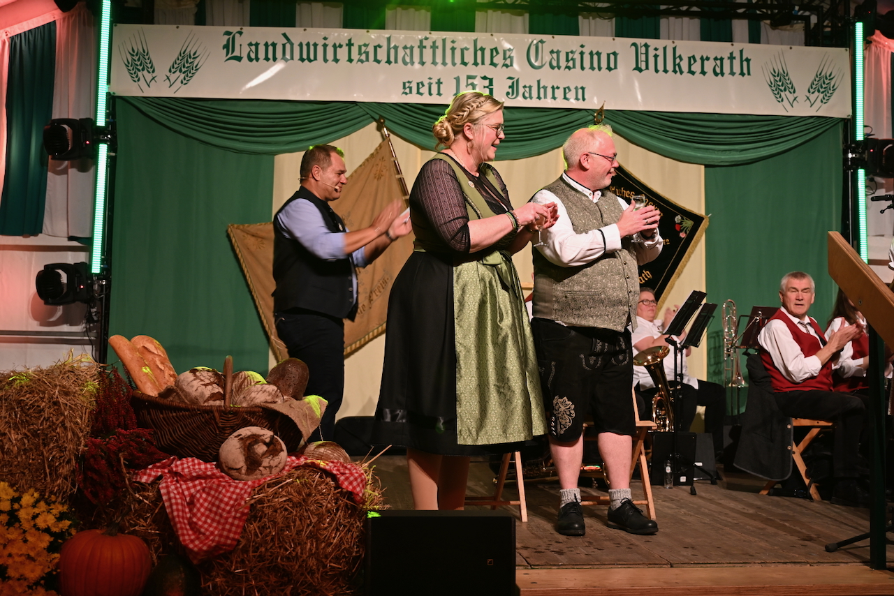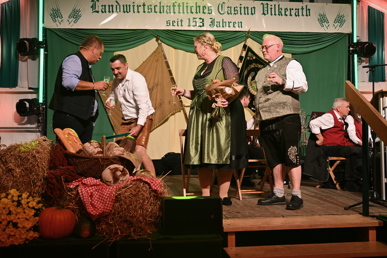 Erntefest Samstag 2025 Festkommers und Kürung des Erntepaars Inga & Marc Griese Auftritt Tanzcorps Blau-Weiß Vilkerath Auftritt der Band “Klüngelköpp Partytime