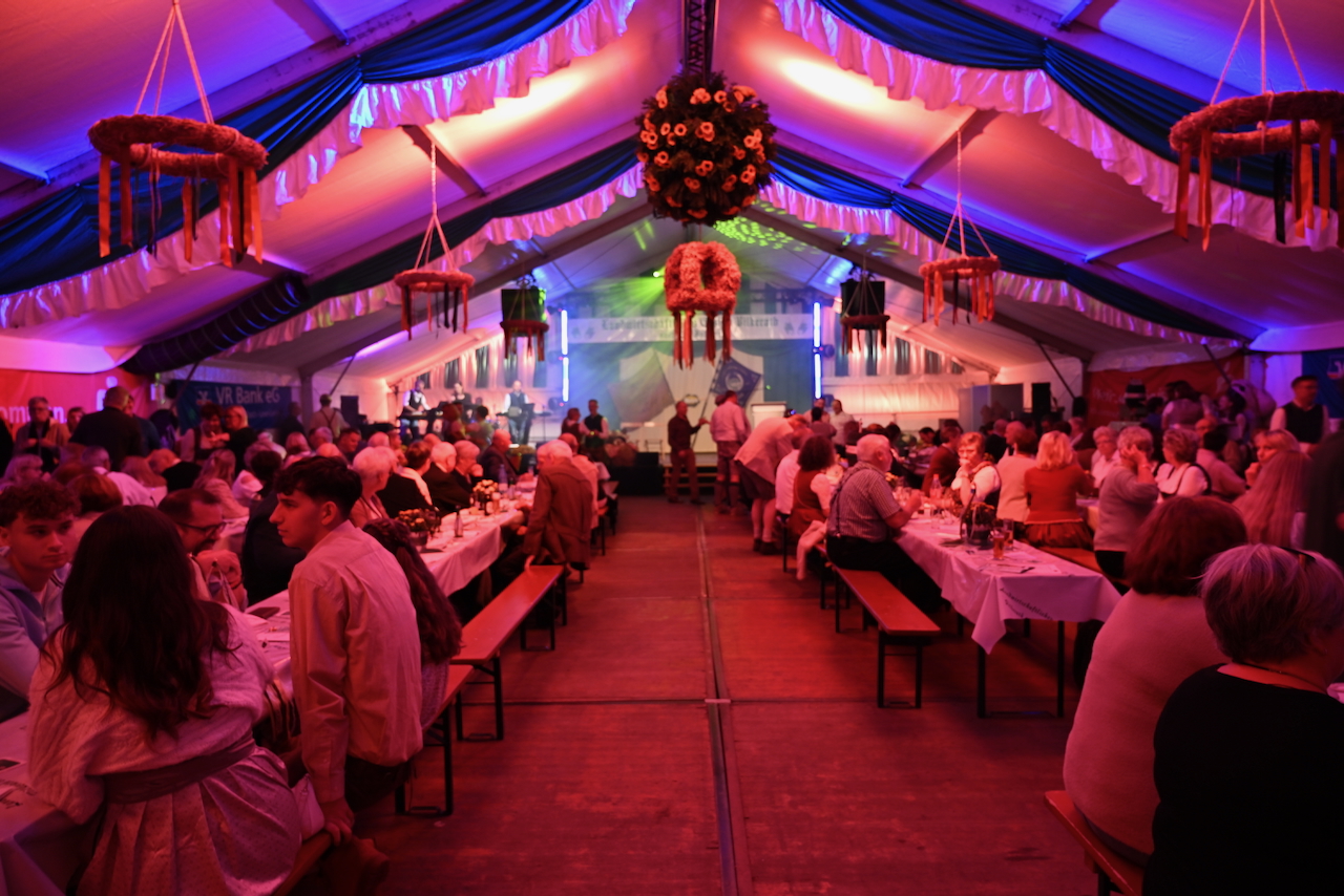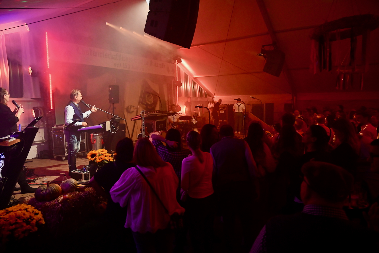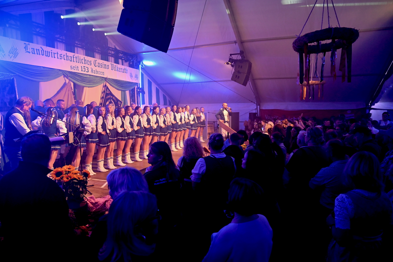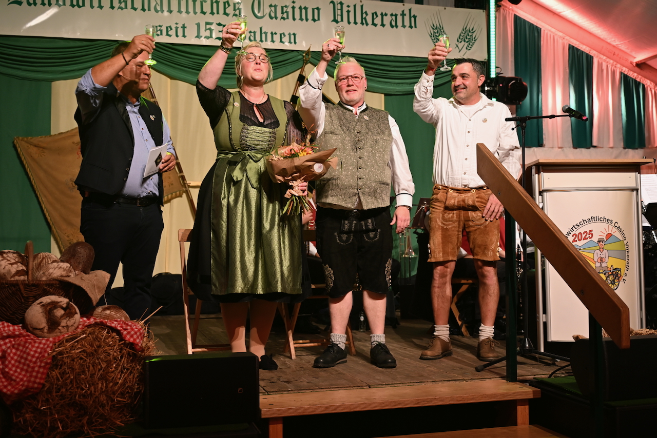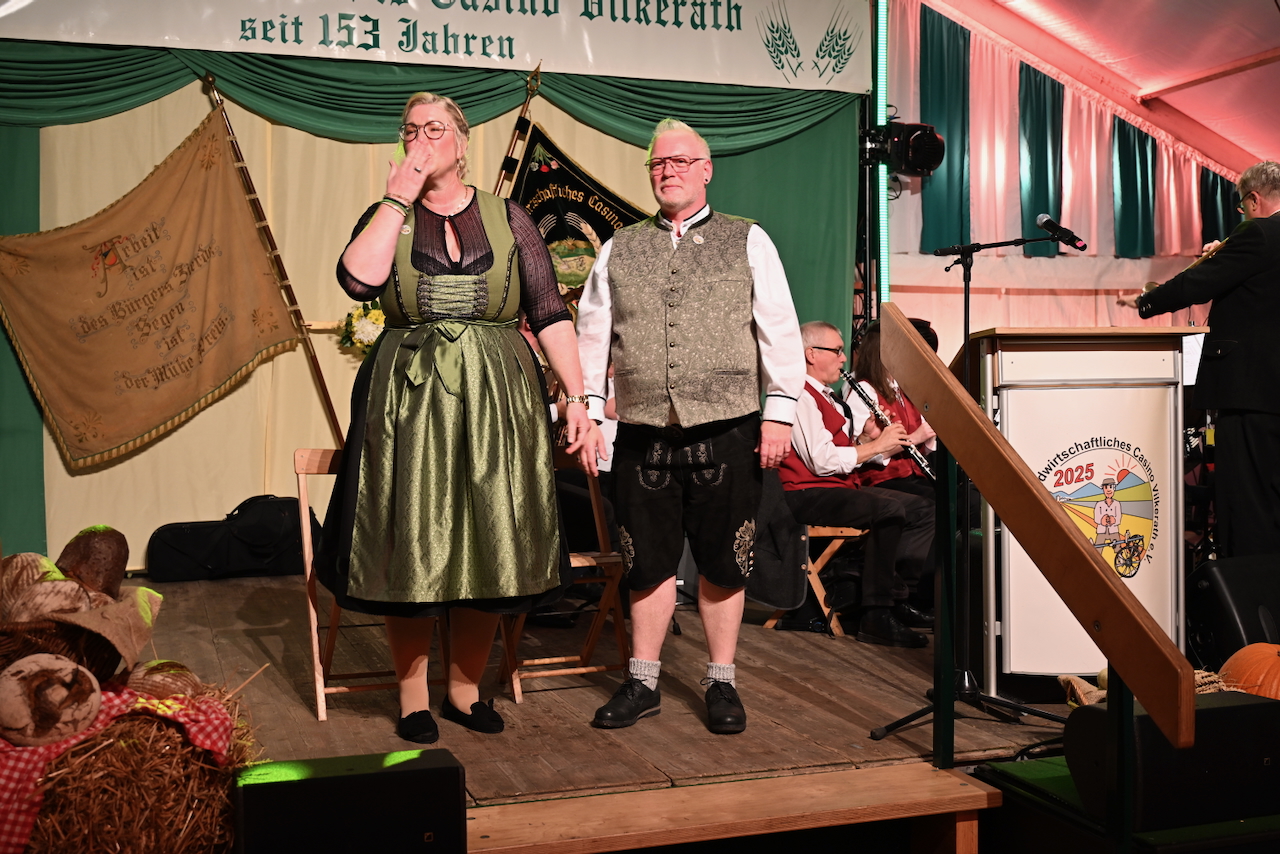 Erntefest Samstag 2025 Festkommers und Kürung des Erntepaars Inga & Marc Griese Auftritt Tanzcorps Blau-Weiß Vilkerath Auftritt der Band “Klüngelköpp Partytime